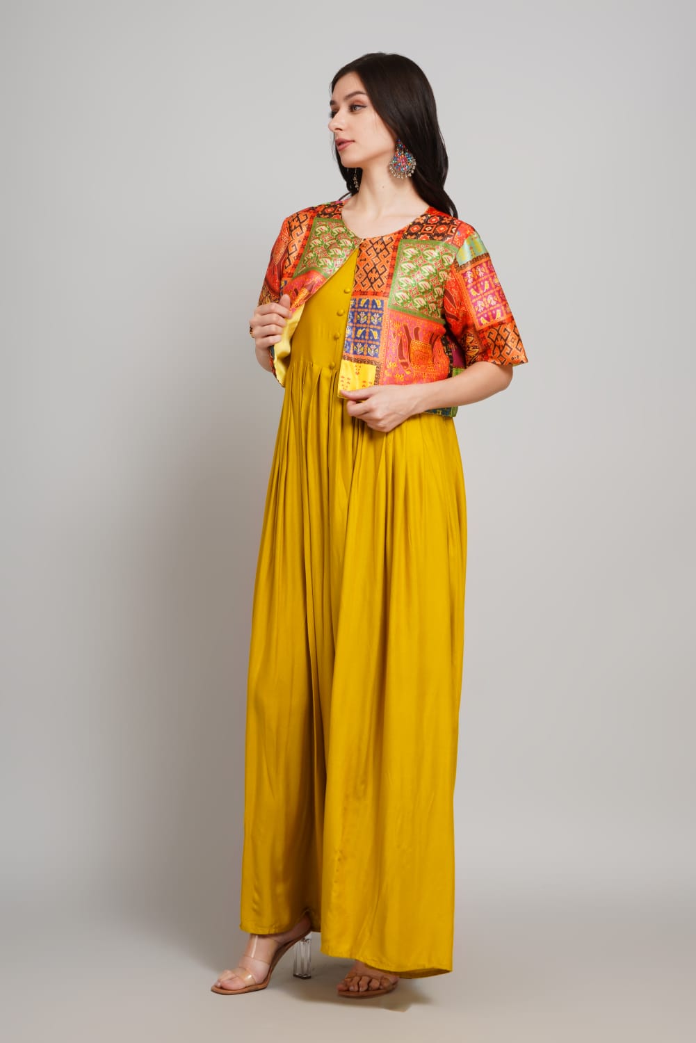 Elevate your ethnic wardrobe with this stunning Rayon Gown paired with a luxurious Silk Jacket, designed to make you shine at every celebration. Crafted for comfort and elegance, this outfit blends traditional aesthetics with modern flair.